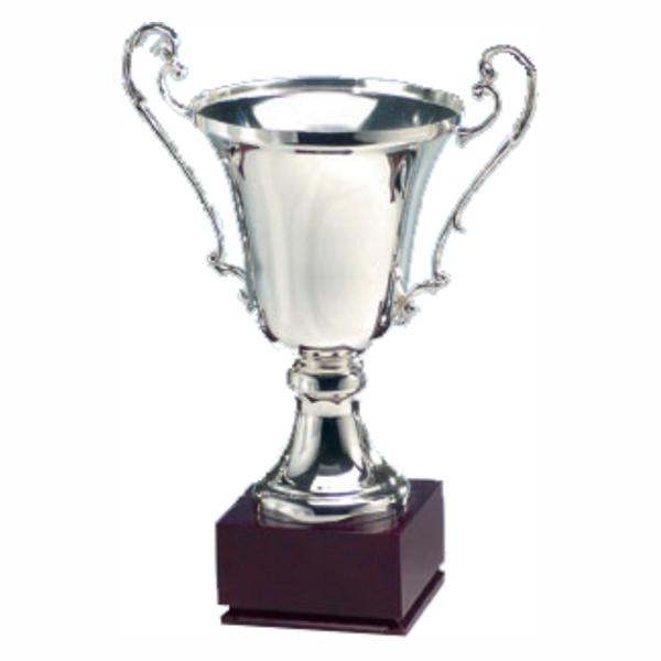 This exquisite trophy is made of silver-plated metal and boasts a high-gloss mahogany base at the bottom that can hold a silver-tone engraved plate. It is a great way to honor and acknowledge the hard work and dedication of those who deserve it.