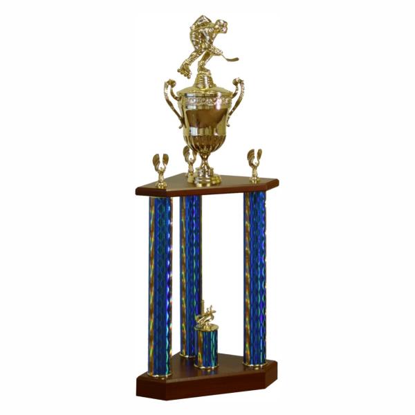 The Three Post Classic Trophy is a remarkable way to acknowledge the winner's outstanding performance and celebrate their achievements. This trophy stands 24", 28" or 32" tall and is impressive, making it a huge hit with the team. The trophy comes with three posts that support a magnificent winner's cup, which is customizable with your preferred figure, column color, and trim. These trophies not only recognize the winner's accomplishment but also motivate and inspire all participants to give their best and reach for success.