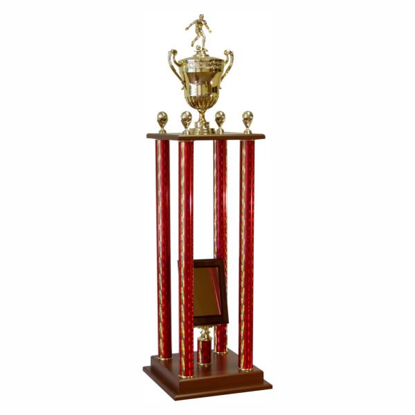 The Four Post Classic Trophy is a remarkable way to acknowledge the winner's outstanding performance and celebrate their achievements. This trophy stands 40", 44" or 48" tall and is impressive, making it a huge hit with the team. The trophy comes with three posts that support a magnificent winner's cup, which is customizable with your preferred figure, column color, and trim. These trophies not only recognize the winner's accomplishment but also motivate and inspire all participants to give their best and reach for success.