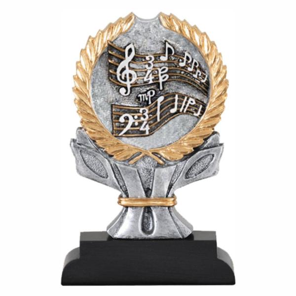 Celebrate your music success with this Music Resin Impact trophy. This hand-crafted, 6" resin figurine features full-color hand painting, making it a unique addition to your upcoming music banquet. The figurine depicts a music collage and is placed on an elegant black base with a personalization plate.